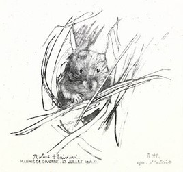 « L’artiste retourne à la communion plus simple avec le monde, celle de l’animal » (in Le guetteur de lune). Cet accord sympathique avec la nature, marqué d’un immense respect et d’une vraie humilité, lui fut dicté par ses innombrables affûts de « chasseur au crayon », sous différentes latitudes. Affûts indispensables pour observer les animaux dans leurs milieux, noter leurs mouvements d’un croquis rapide, regarder les plantes à loisir, dessiner l’infinie diversité. Robert Hainard n’hésite pas à parler de religion de la nature, d’envoûtement, retrouvant par là la manière des hommes du Paléolithique. Les peintures pariétales témoignent d’une relation forte entre l’homme et une nature dont il participe pleinement. Cette observation correspond à la distinction essentielle entre connaissance sensible et connaissance intellectuelle ; « On dessine mal parce qu’on représente ce qu’on sait au lieu de ce qu’on voit. » (in La méthode de mon père. Enseignement du dessin et du modelage – 1994). « La pensée plastique pourrait apporter beaucoup à la pensée rationnelle, lui ouvrir des perspectives inattendues, l’élargir et l’assouplir. » (in Nature et mécanisme – 1946)